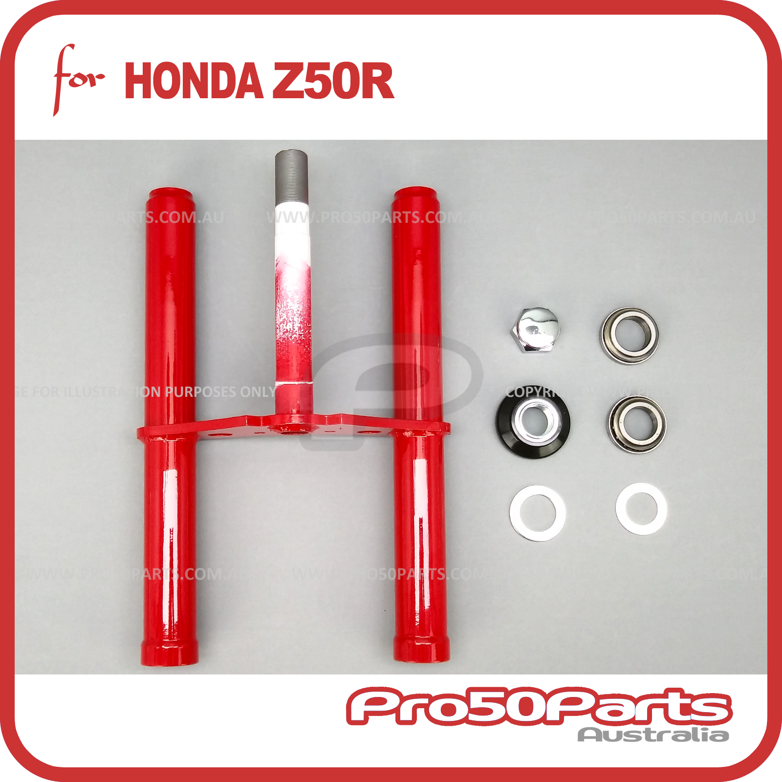 (Z50R) - Front Fork Set (Red, Inc. Triple Tree, Steering Bearing Kit)